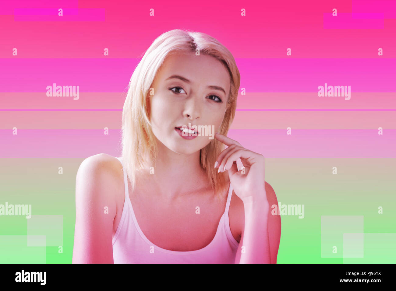 Una giovane bionda tettona gioca con le sue tette