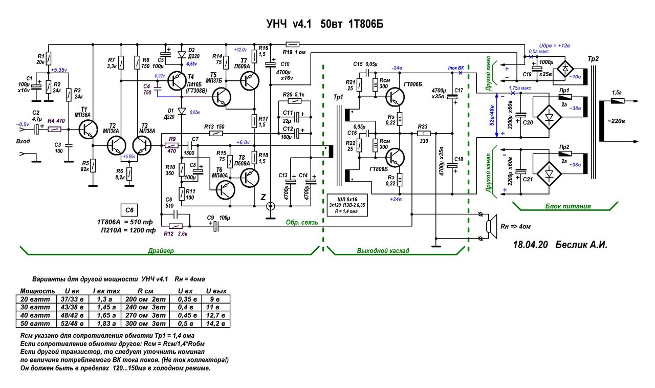 Унч выходным трансформатором