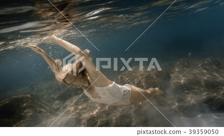 Underwater white swimsuit