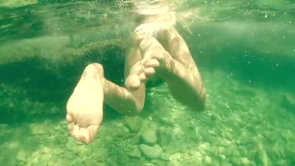 Beautiful snorkeler girl with white swimsuit and white classic oval mask show underwater signs in the pool . Enjoy waching this beautiful snorkeling girl .Watc . . .
