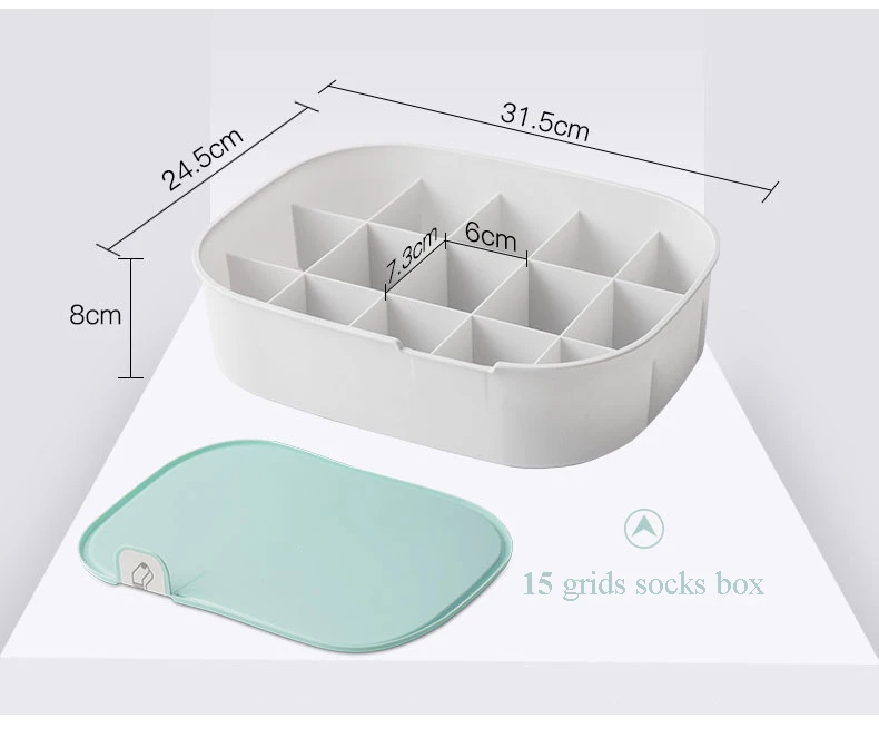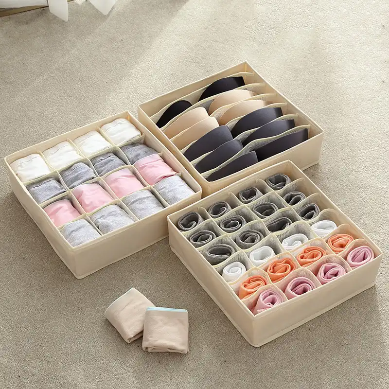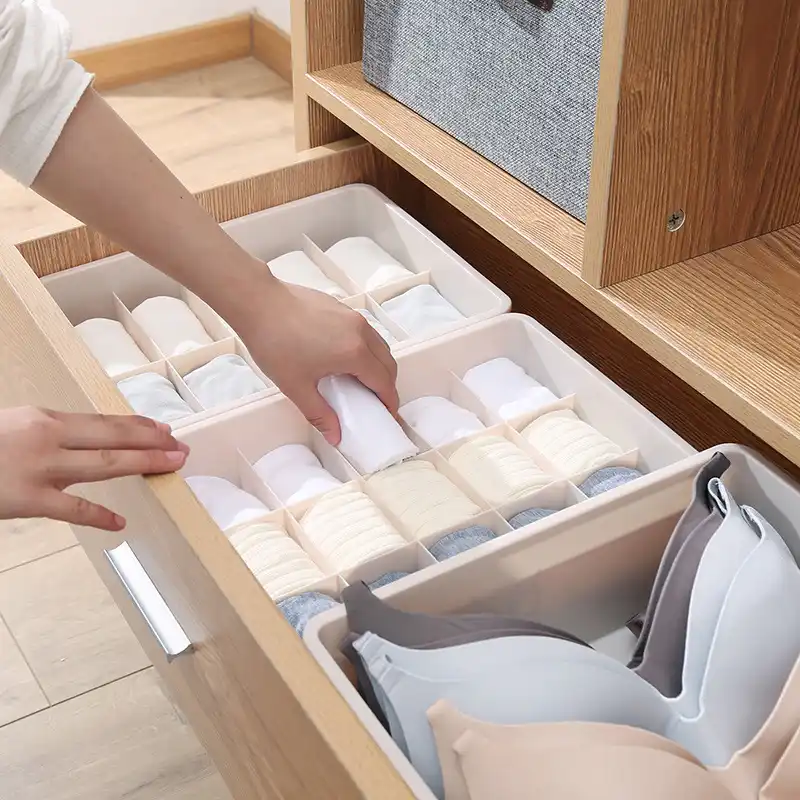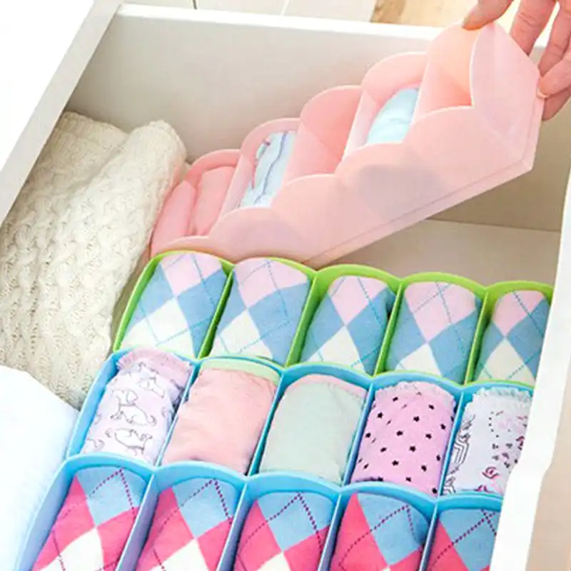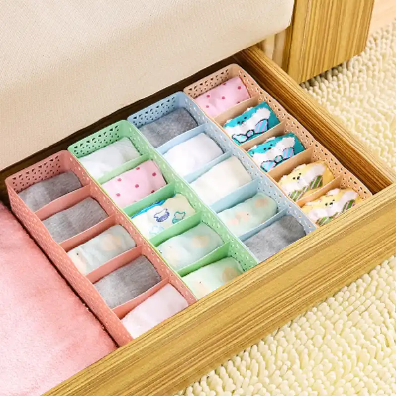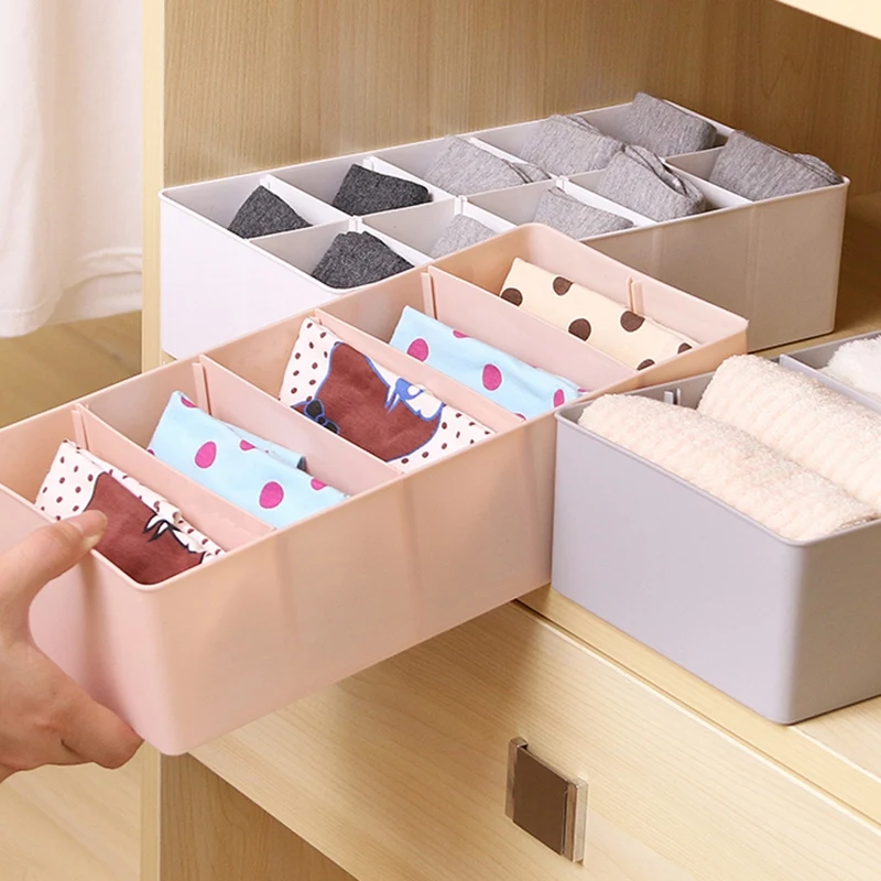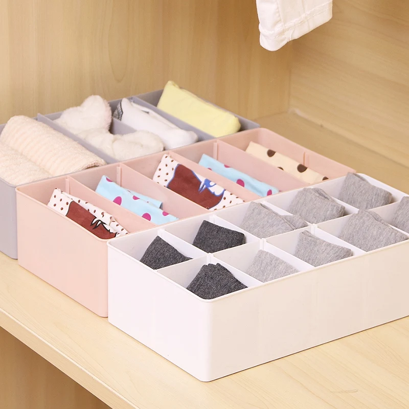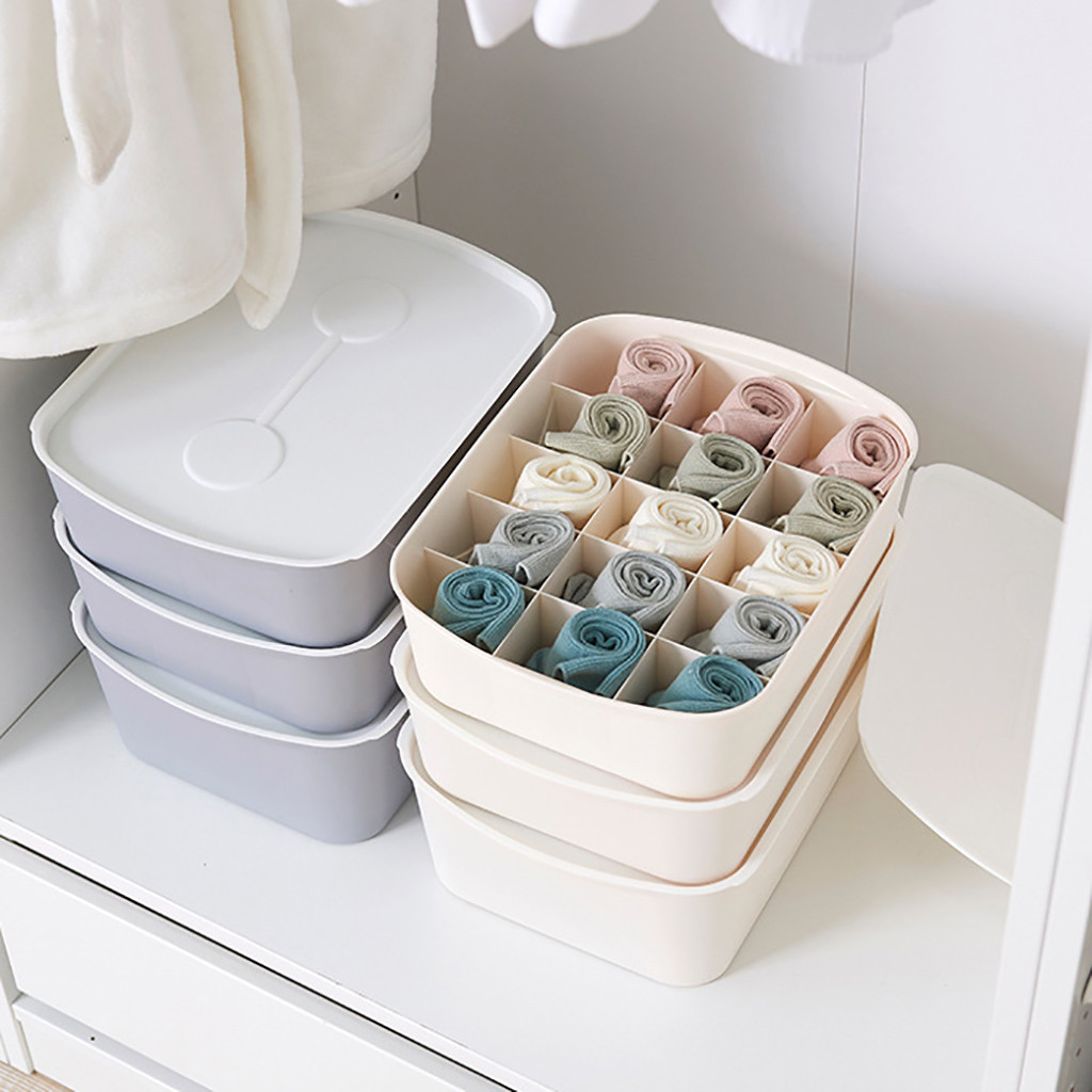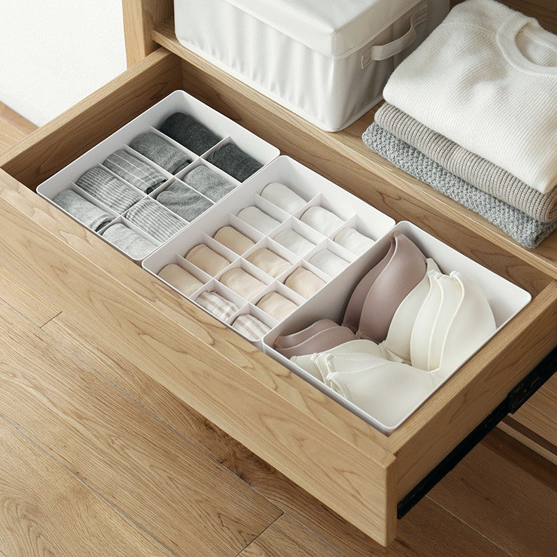 Underwear Storage Box with Grid Design Solid Color Simple Style Wardrobe Draw Organizer