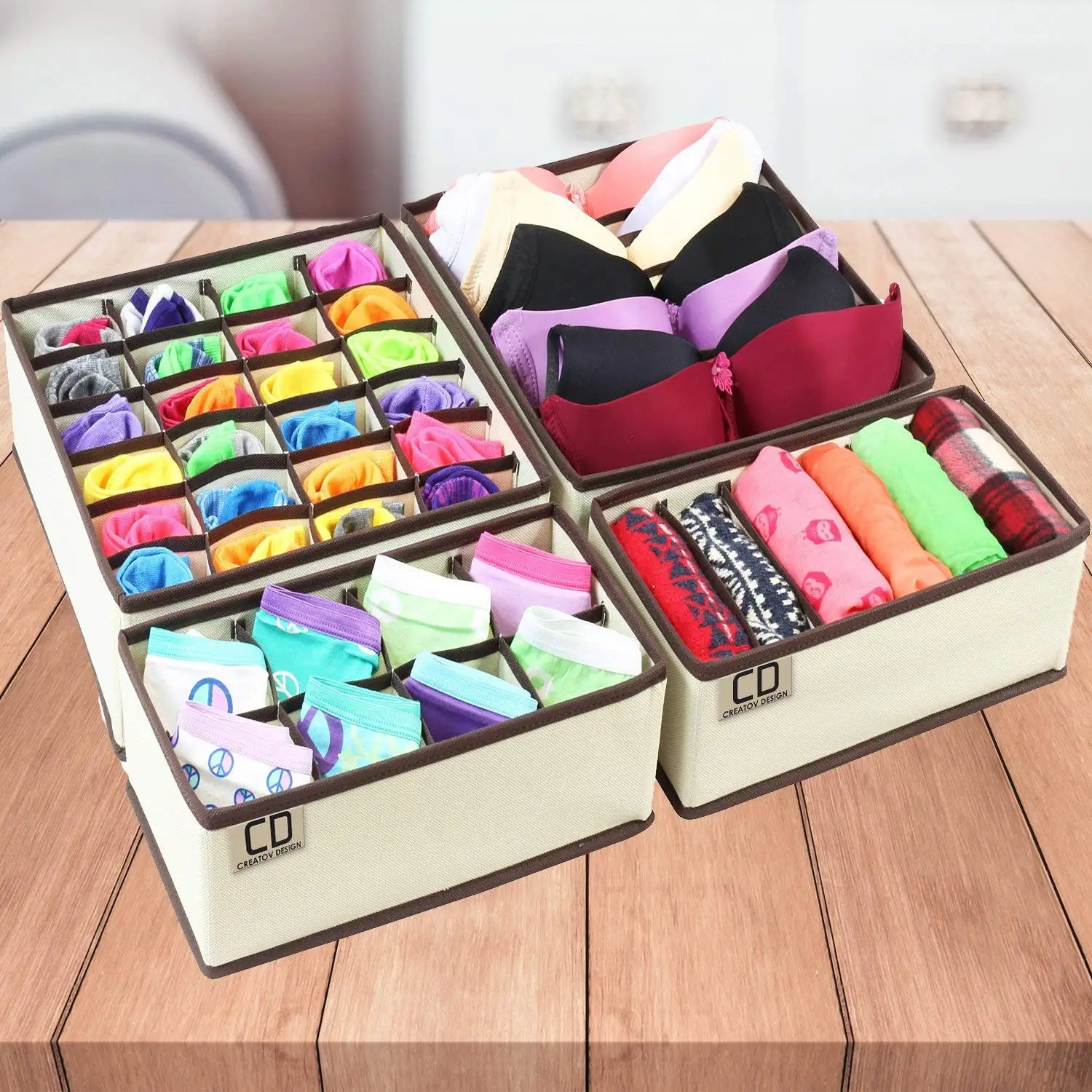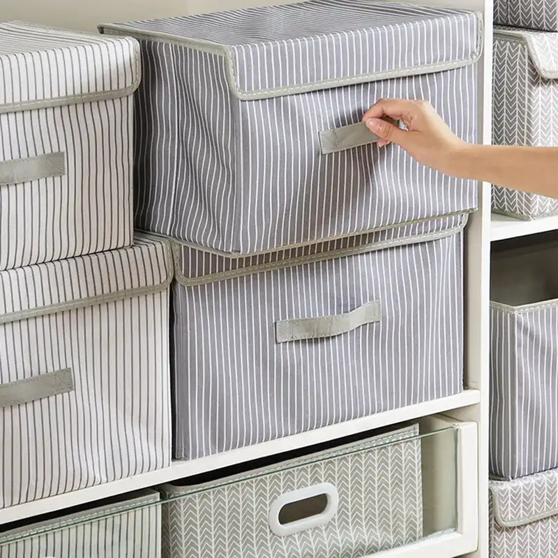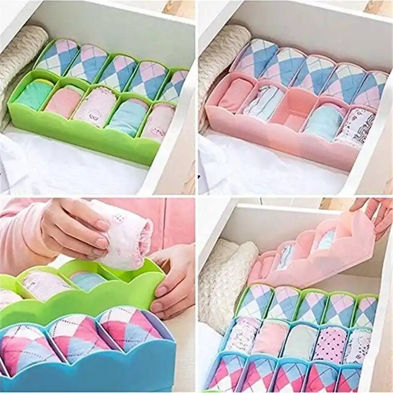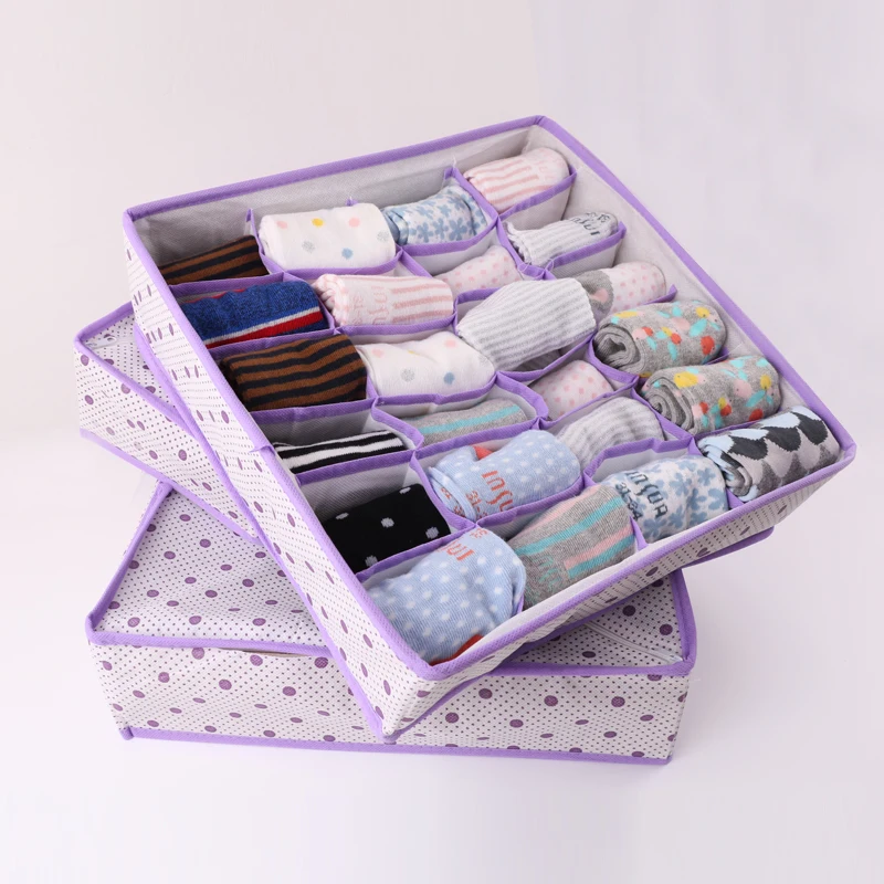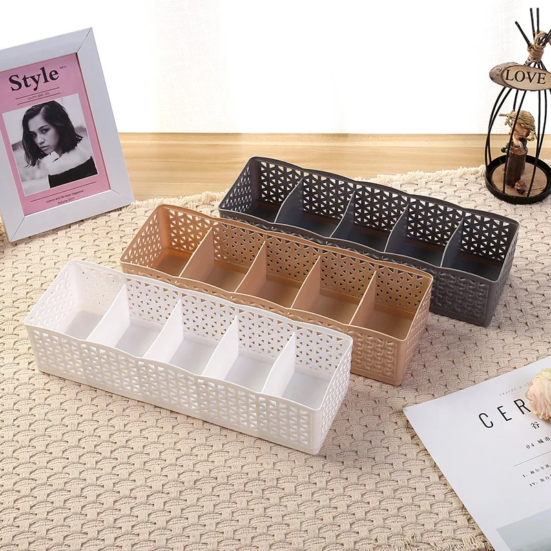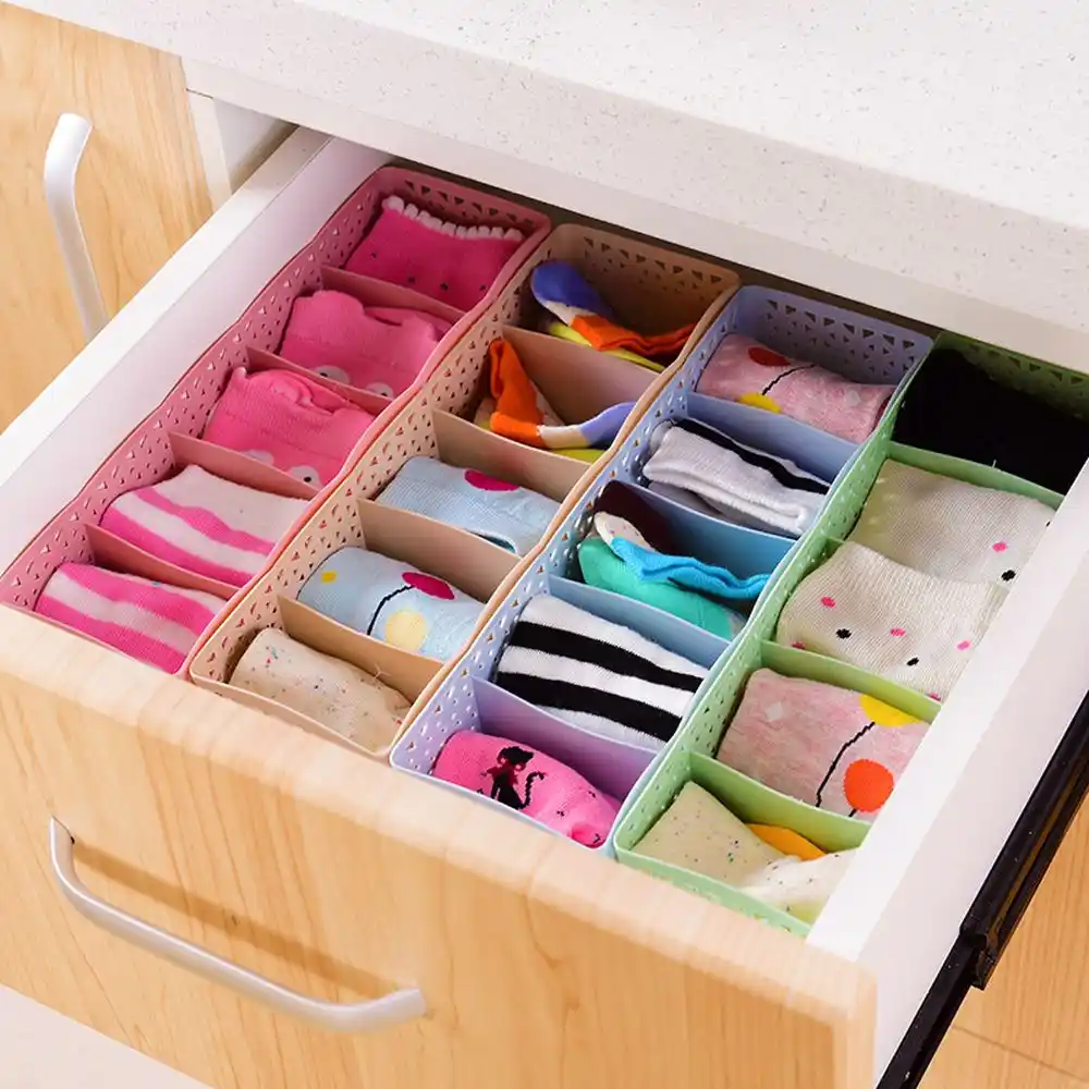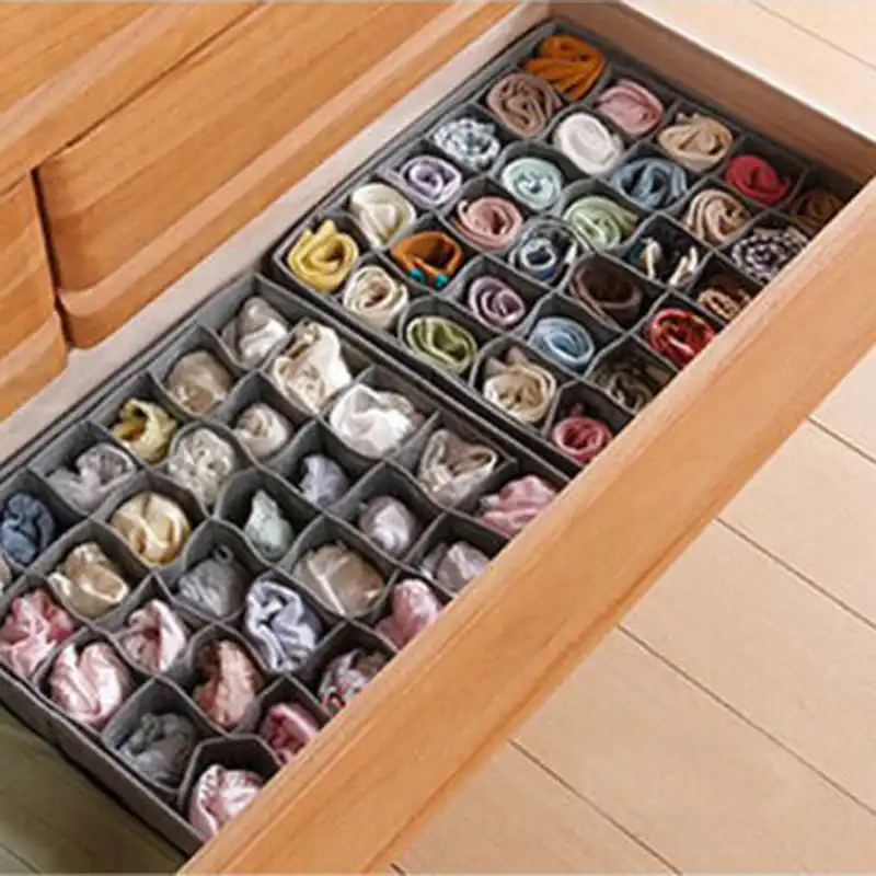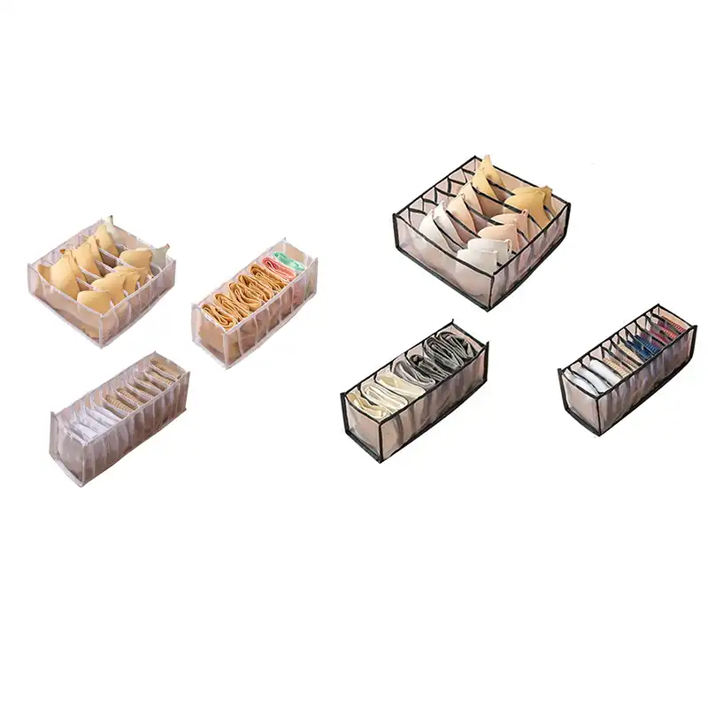 Underwear Storage Box with Grid Design Solid Color Simple Style Wardrobe Draw Organizer