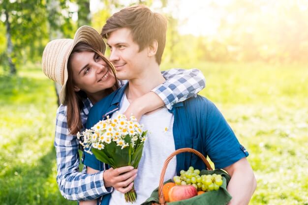 Femme enthousiaste accueille son mari au pieu