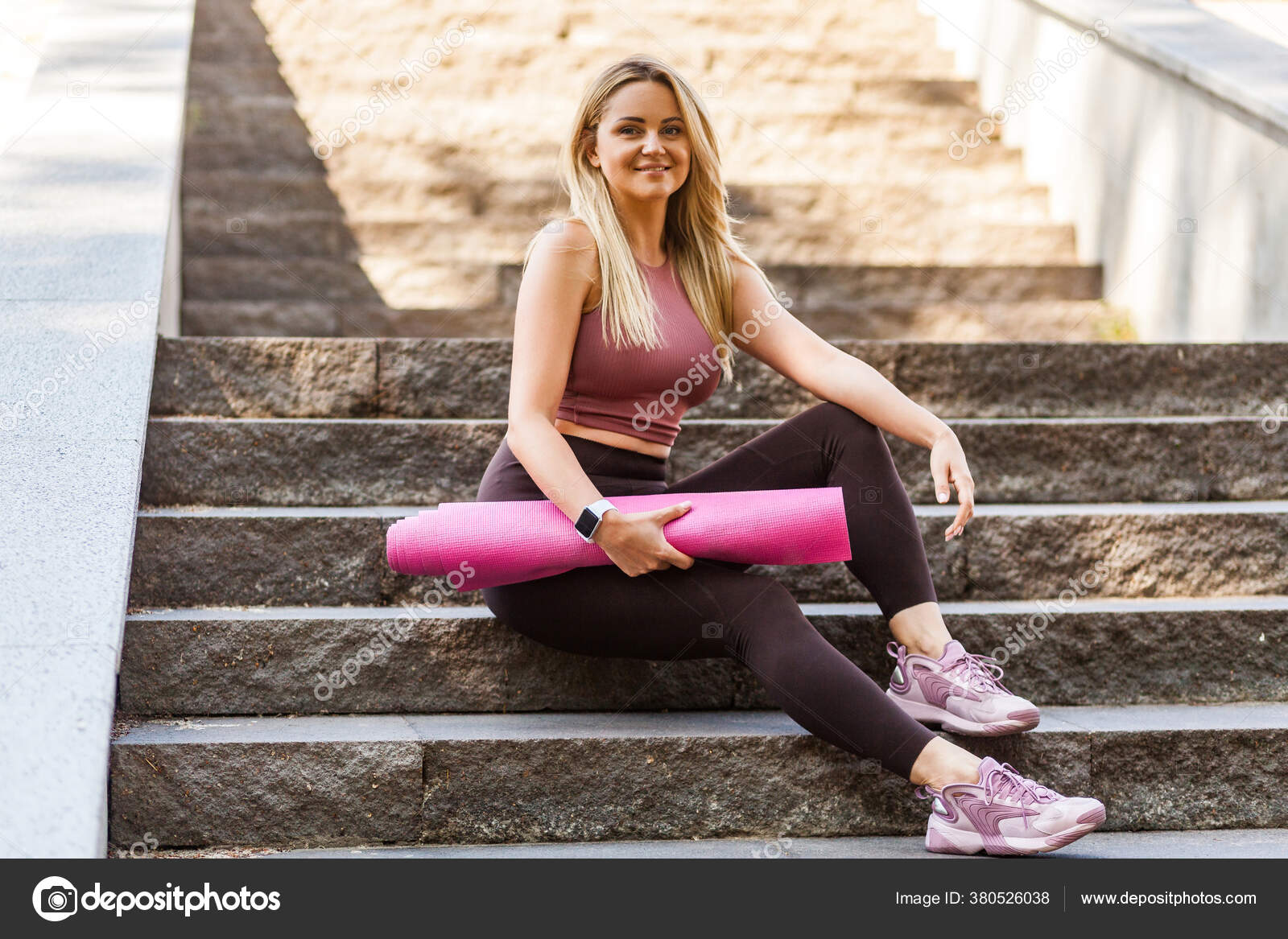 Une blonde avec des collants roses