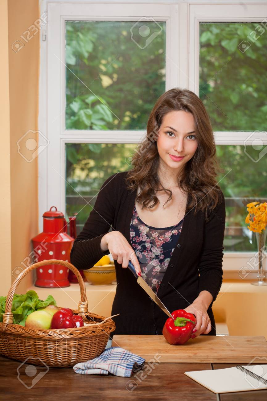 Une brune dans la cuisine