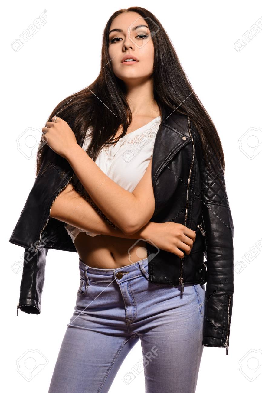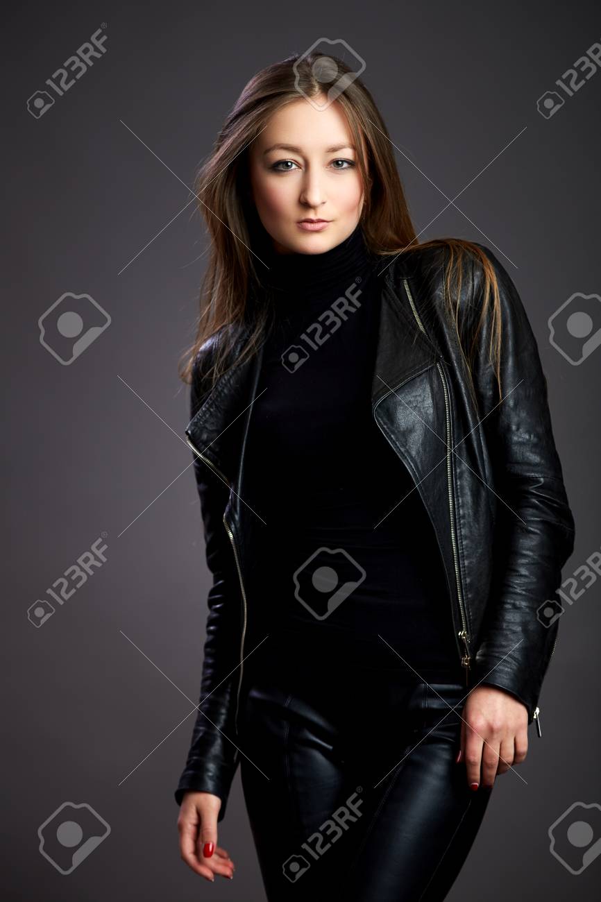 Une brune en cuir