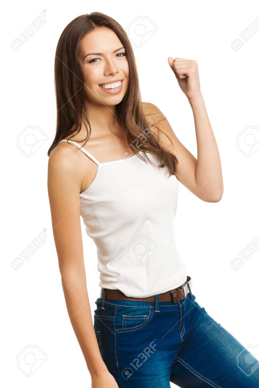 Une brune super heureuse