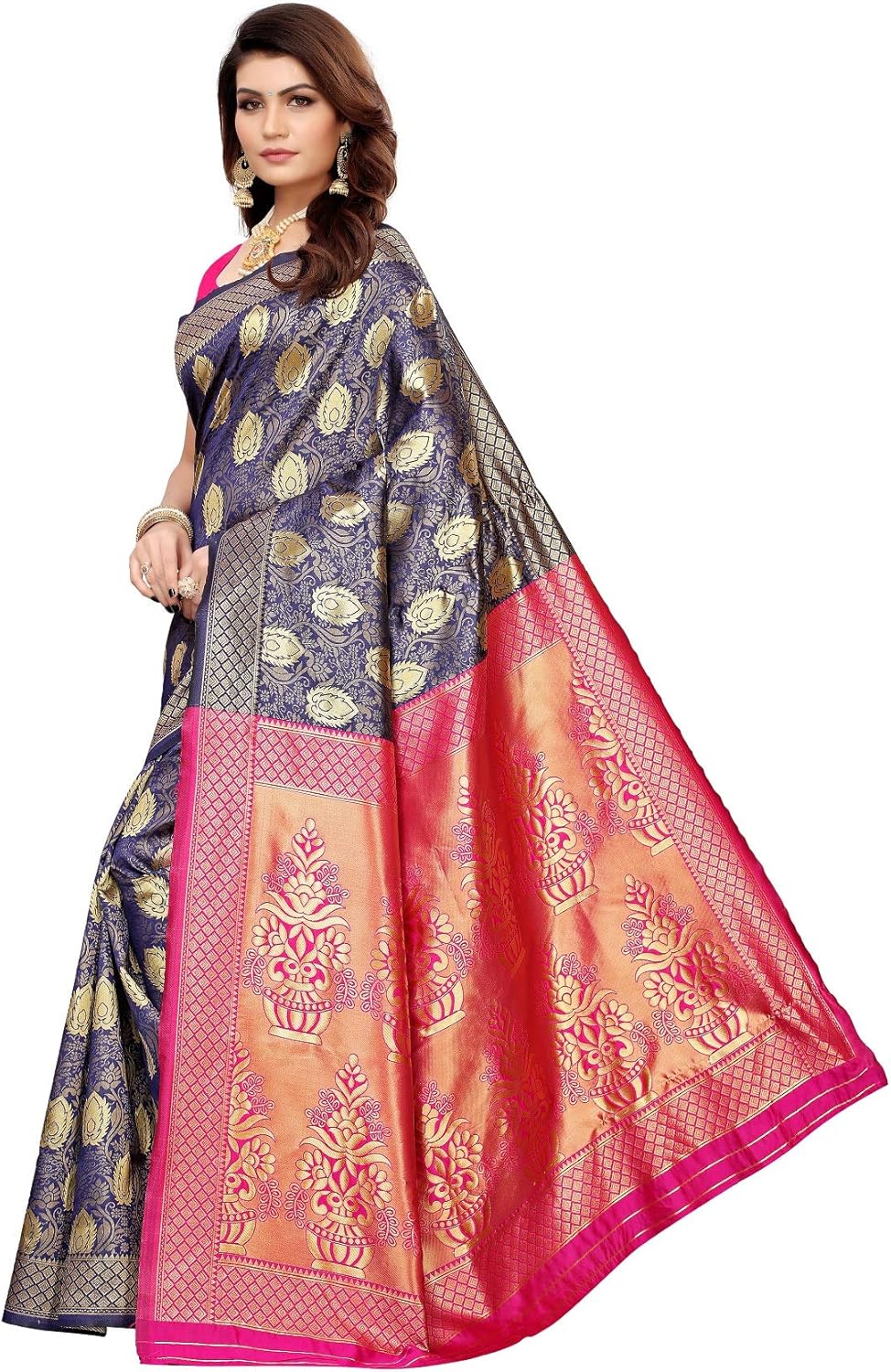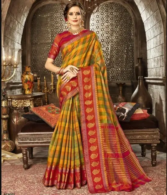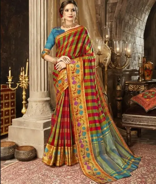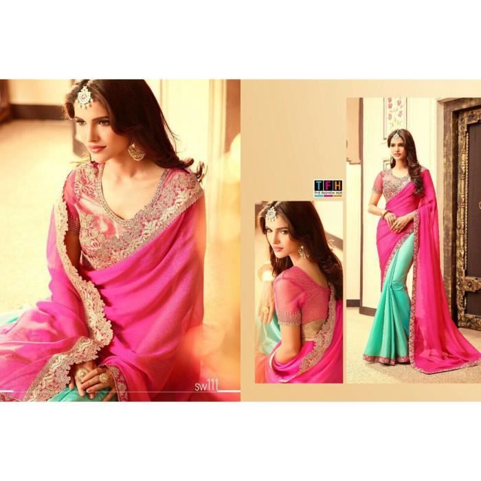 Une indienne en sari est satisfaite