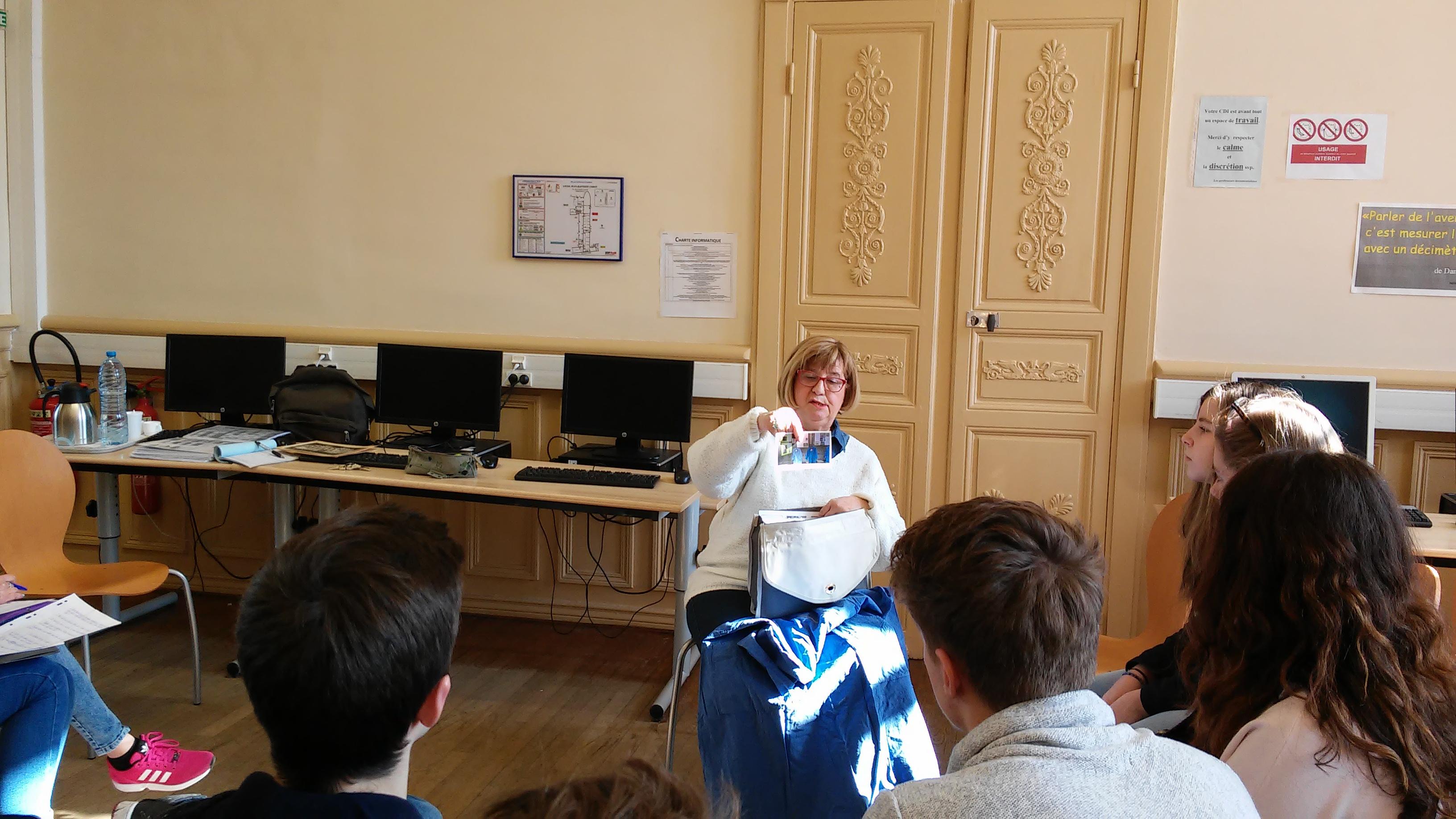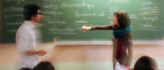 Une jeune fille calme un enseignant