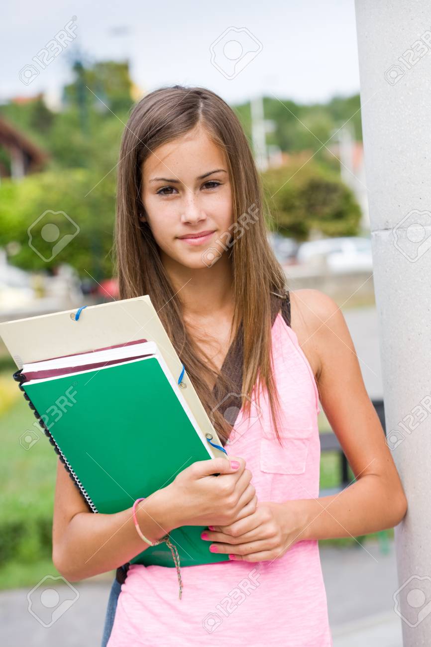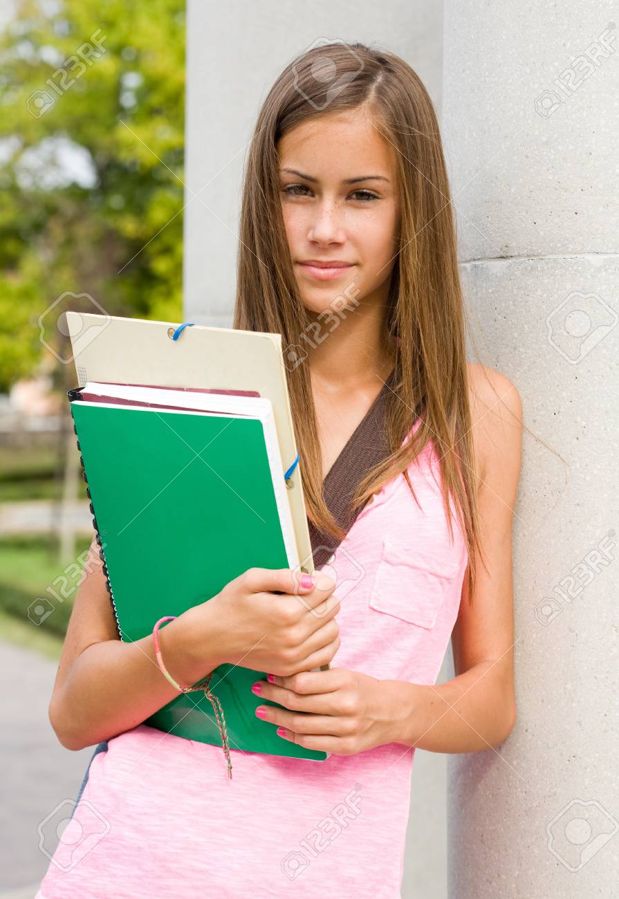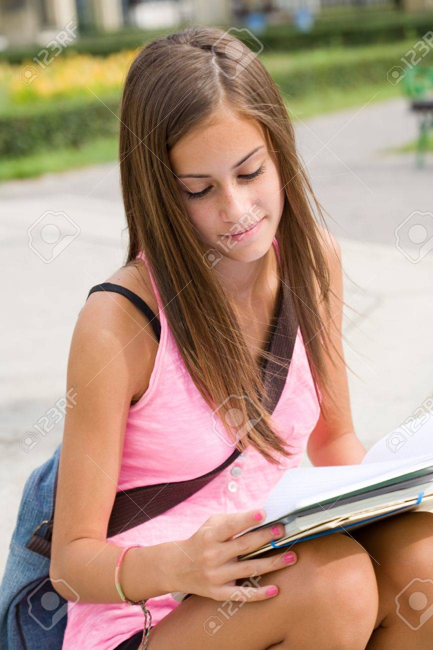 Une étudiante avec des bons seins