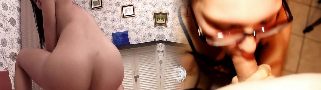 Le voisin éjacule dans les lunettes de la brunette chaude