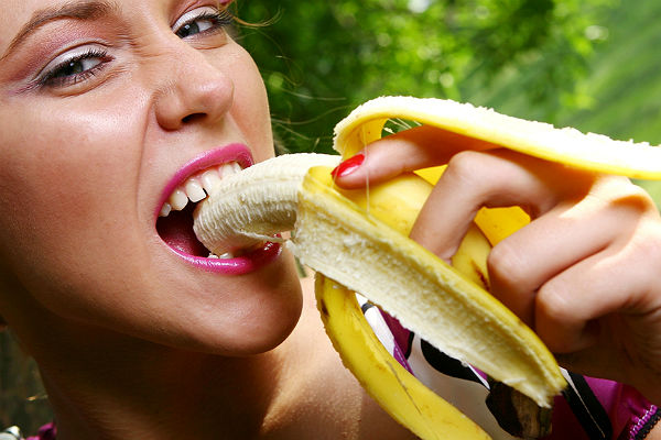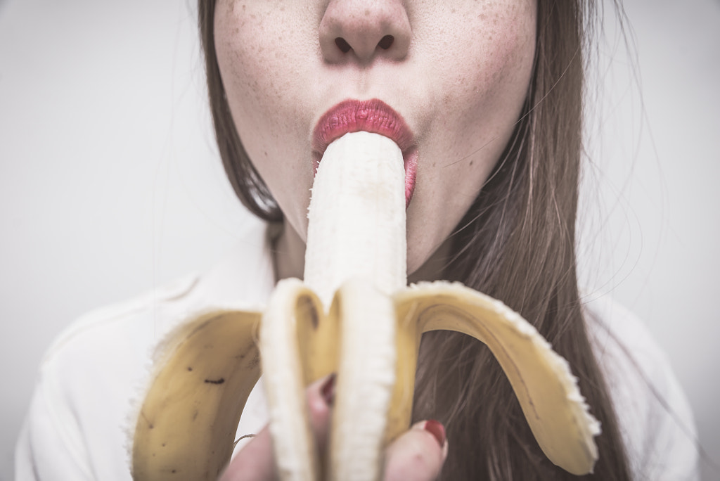 Ungezogenes Babe lutscht Banane