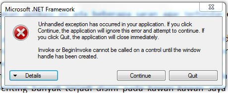 Unhandled exception has occurred in your