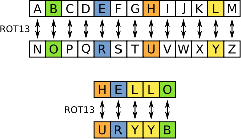 Мало кто знает, но алгоритм ROT13 был весьма популярным алгоритмом шифрования сообщений в 90-х прошлого столетия. А на сегодняшний день ROT13 стал именем нарицательным и обозначает слабую схему шифрования.