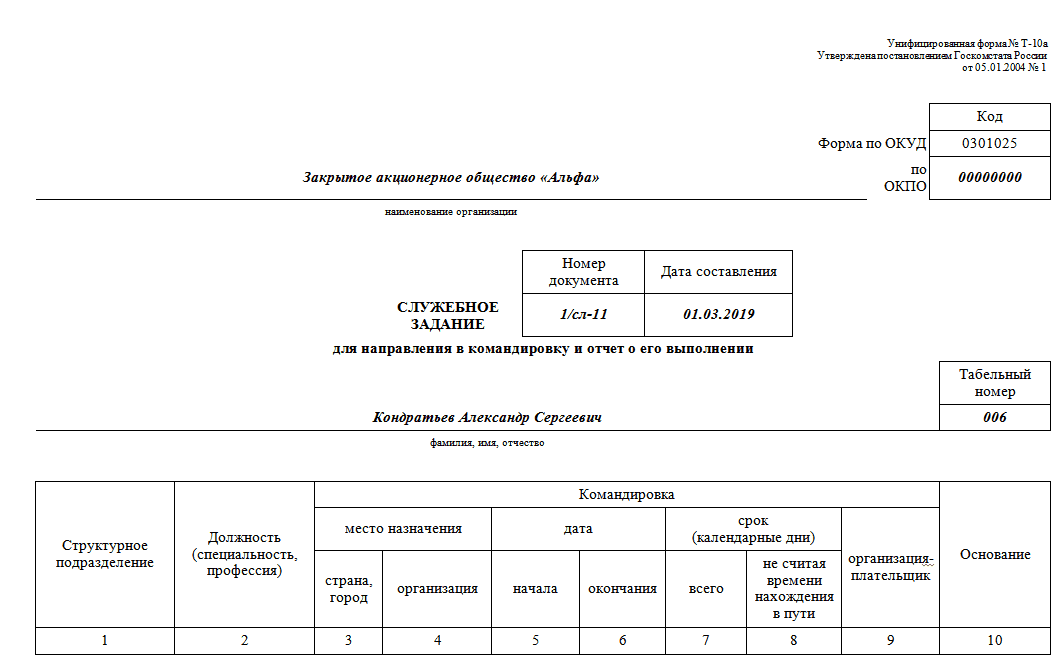 Унифицированная форма 10а