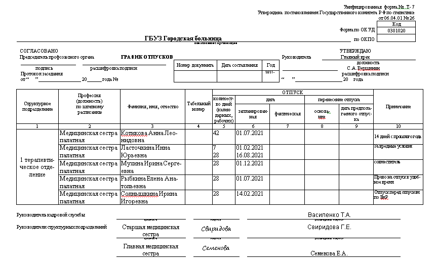 Унифицированный бланк т 7