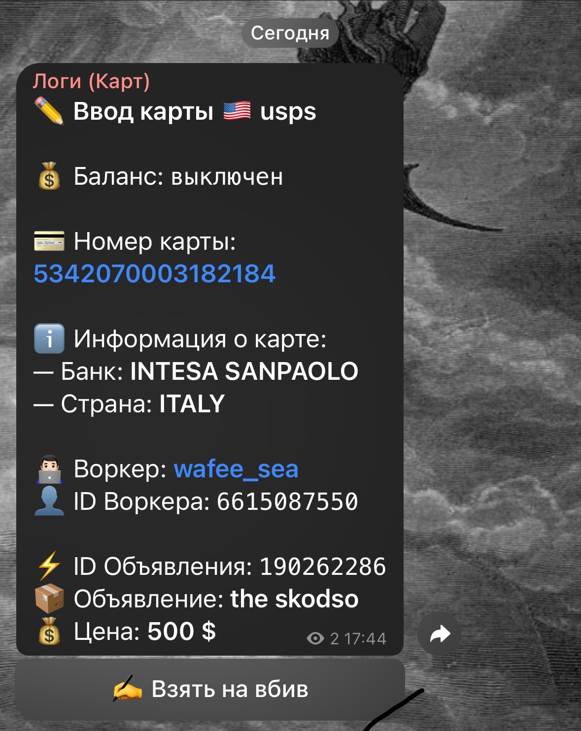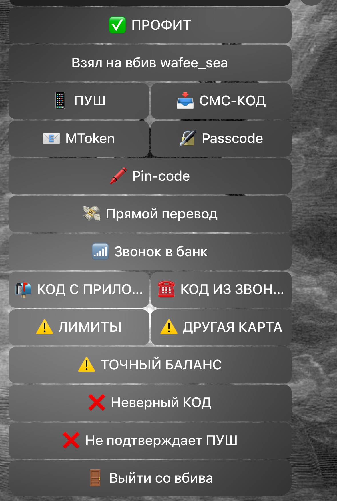 Панель вбивера (когда мамонт ввел банковскую карту)