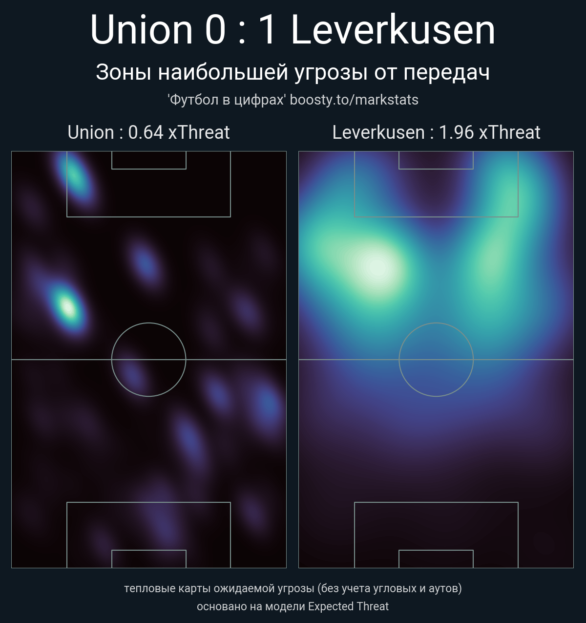 xThreat без учета угловых: 0.64 - 1.96