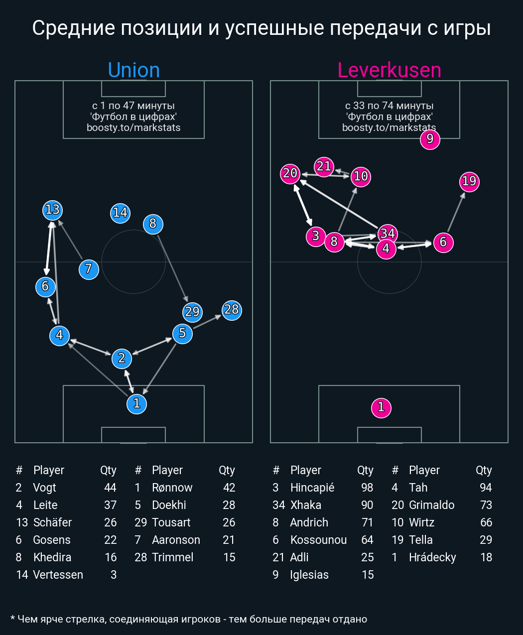 60 успешных передач из 70 попыток (3 под удар, 12 с продвижением, 31 на трети соперника)