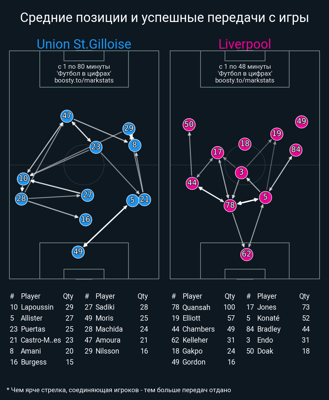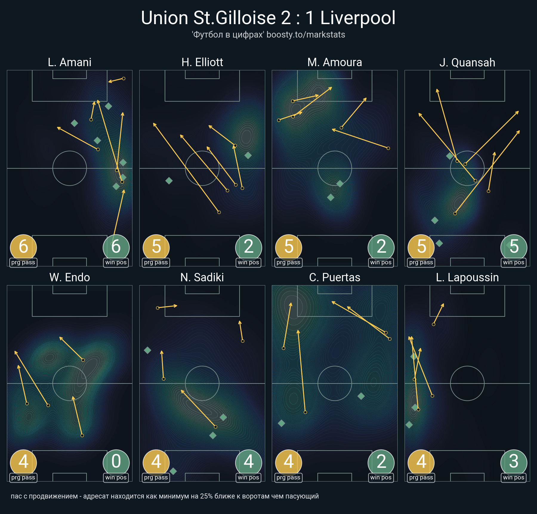 13 успешных передач из 20 попыток (2 под удар, 6 с продвижением, 2 на трети соперника)