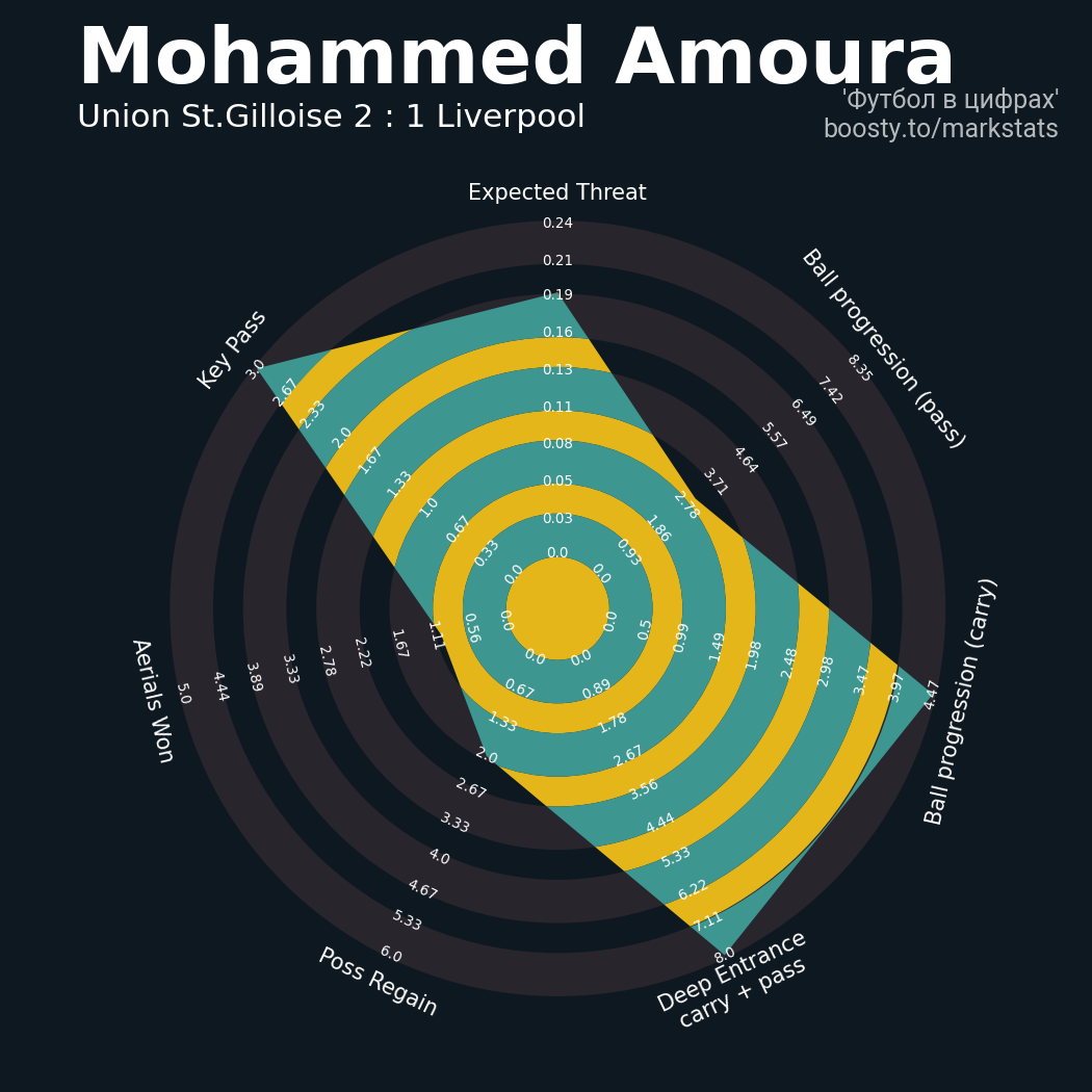 21 успешных передач из 33 попыток (2 под удар, 4 с продвижением, 8 на трети соперника)