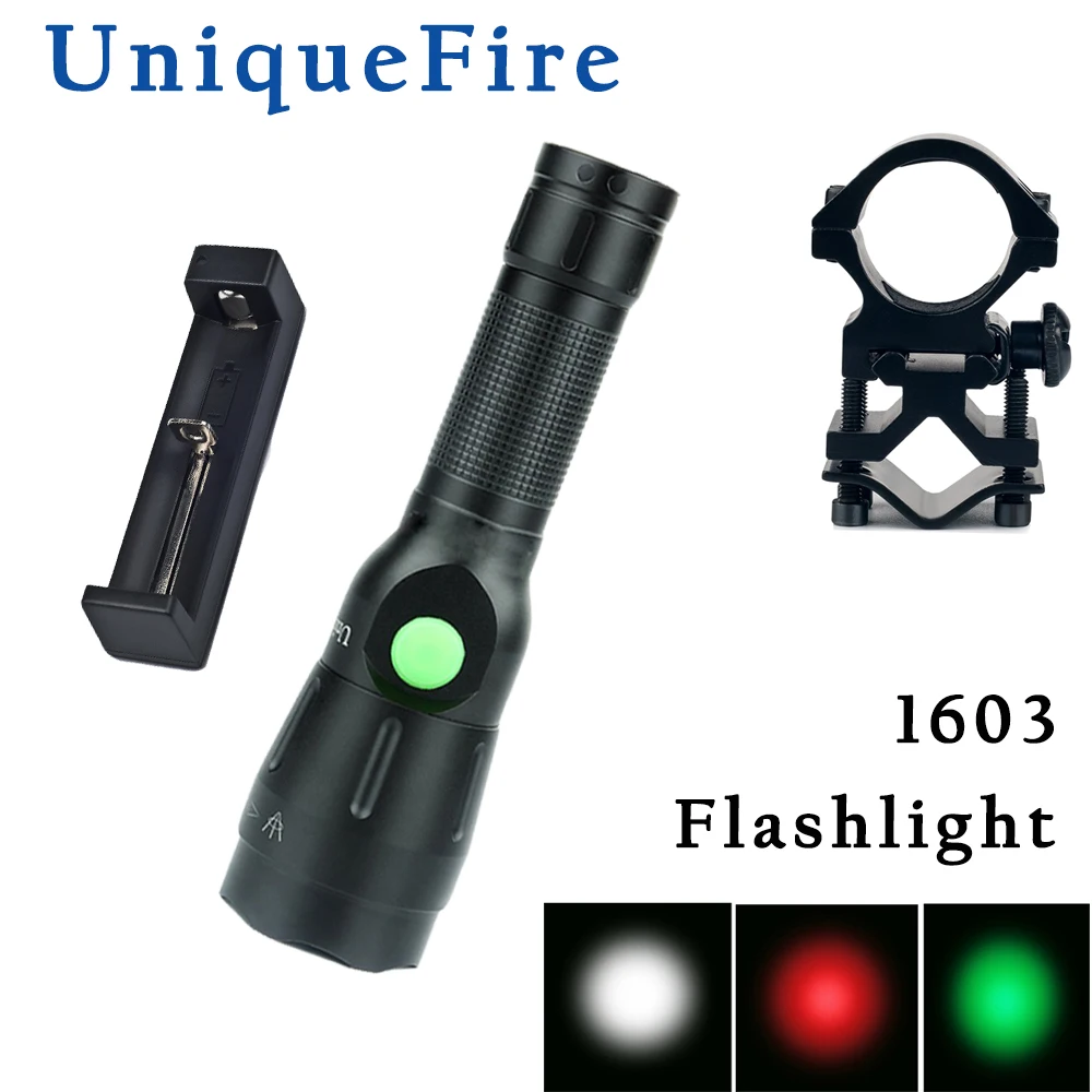 PYgWIIDfHere you can buy UniqueFire 1603-38 XRE Portable LED Flashlight Zoomable Lanterna Torch Lighting 4 Modes Torch & Scope Mount & Charger with free delivery to your post office.