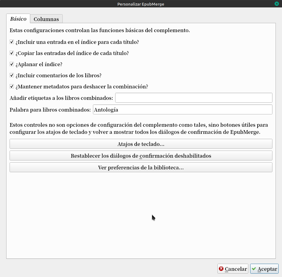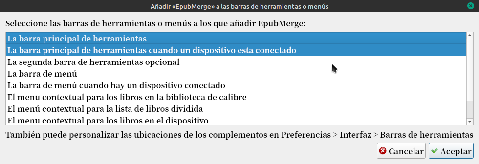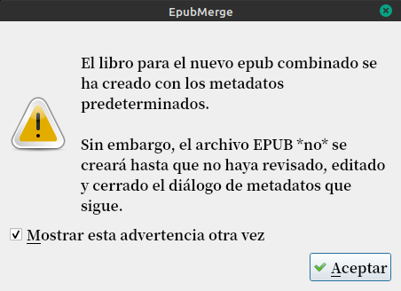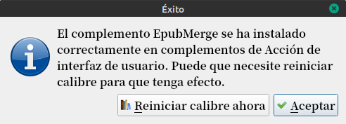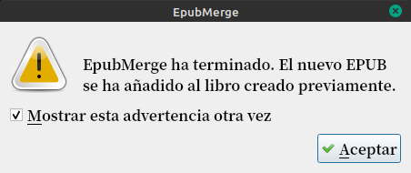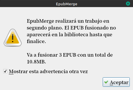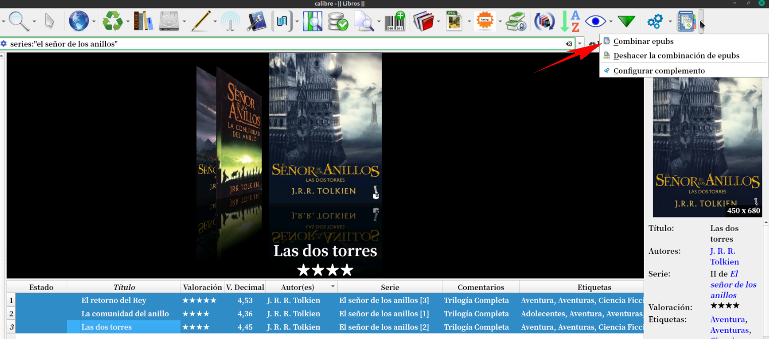Con los libros seleccionados, tocamos la flecha del costado del plugin y tocamos en Combinar Epub.