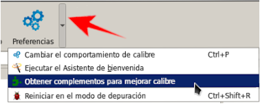 Para instalarlo tocamos la flecha lateral del icono de preferencia y tocamos Obtener complementos para mejorar el calibre.
