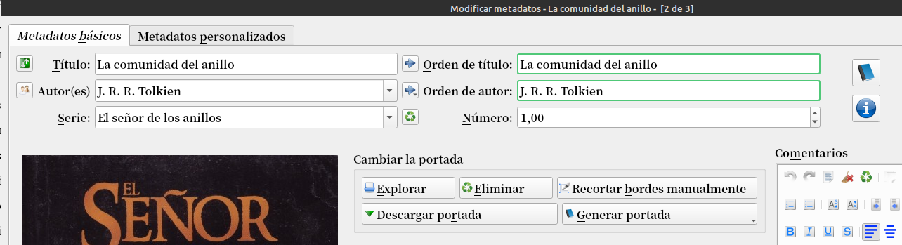 Se supone que tenemos los libros con los metadatos completados, para poder hacer la búsqueda de la serie, la serie debe estar cargada.
