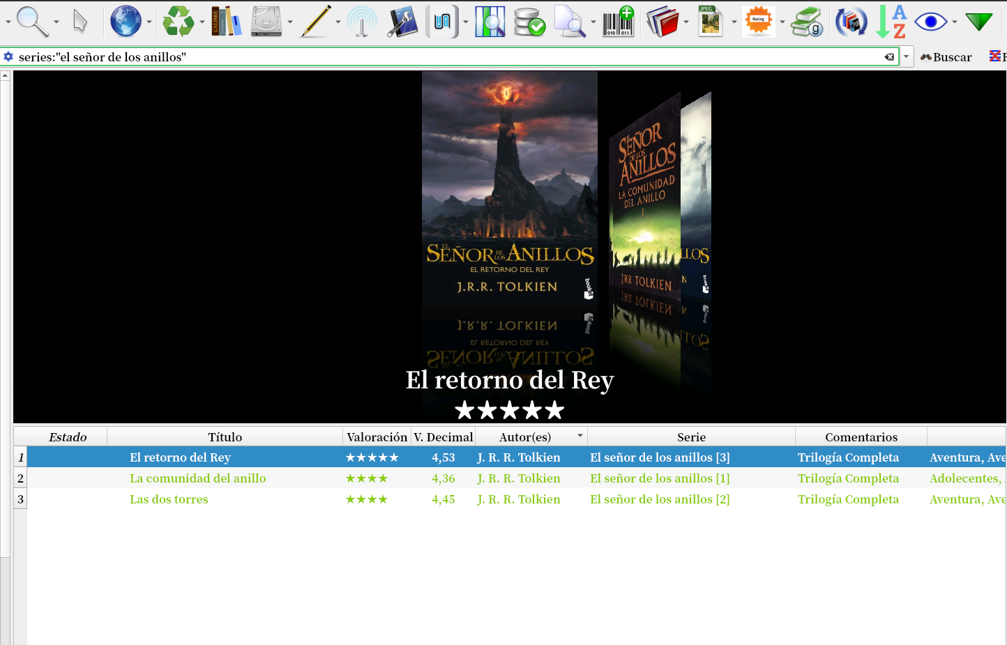 Y así vemos como queda cargado el epub con la saga completa del señor de los anillos para tener todos los libros en un solo archivo.