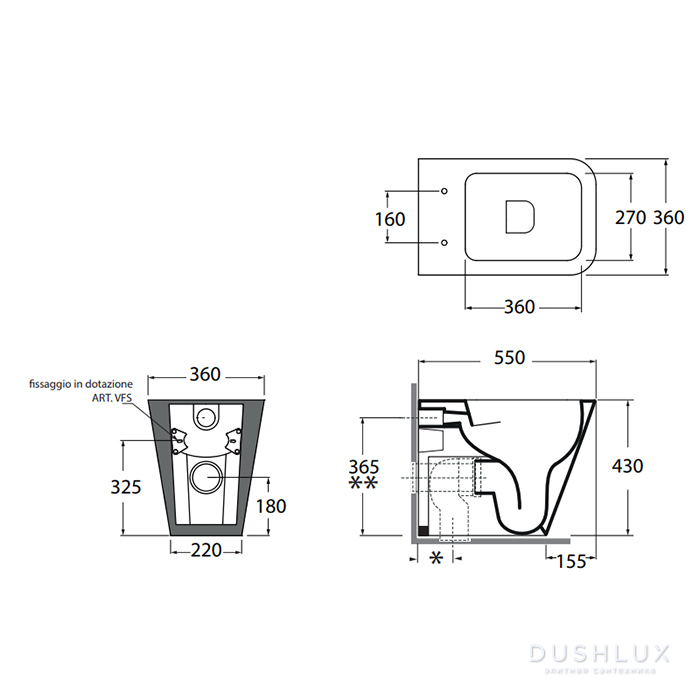 Унитаз 55 см