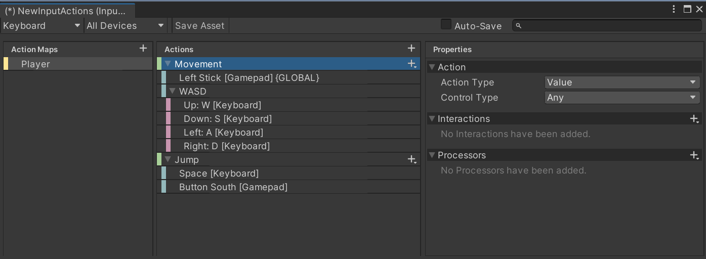 Unity input action