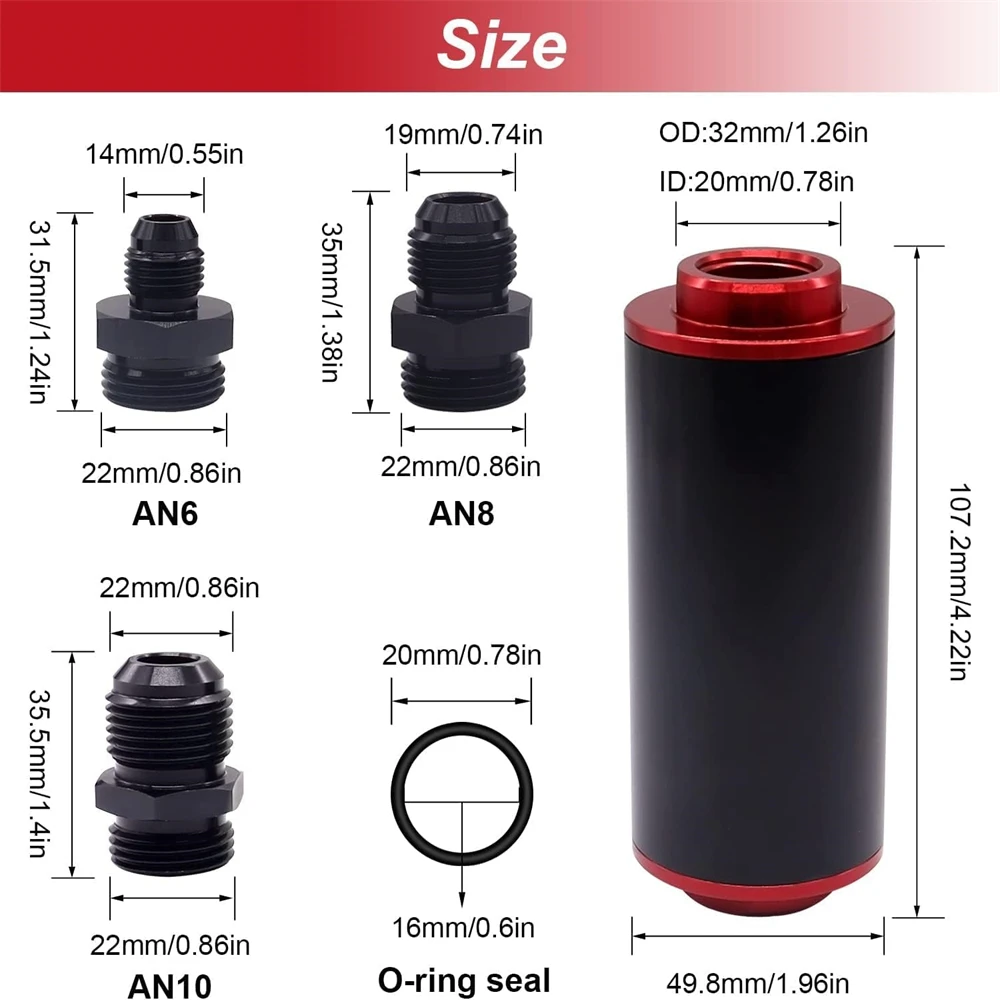 pZcJhxPRHzHere you can buy Universal 50MM Inline Fuel Filter 100 Micron With 6AN 8AN 10AN Adapter For Filtering Gasoline Diesel E85 Reusable Practical with free delivery to your post office.