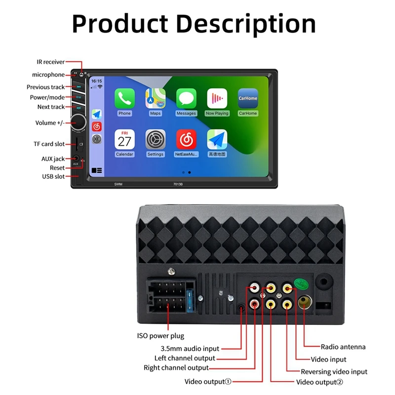 Universal 7Inch Carplay Car Radio HD Multimedia Touchscreen MP5 Player Bluetooth USB FM Camera Mirror Link 7013B 12LED Camera - Купить с бесплатной доставкой
