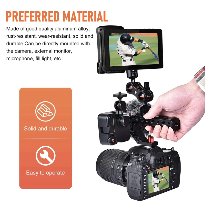 SyGKVRUBaBHere you can buy Universal DSLR Camera Rig Hand Grip Camera Top Cold Shoe Mount 1/4 Inch & 3/8 Inch Holes Aluminum Alloy Camera Handle with free delivery to your post office.