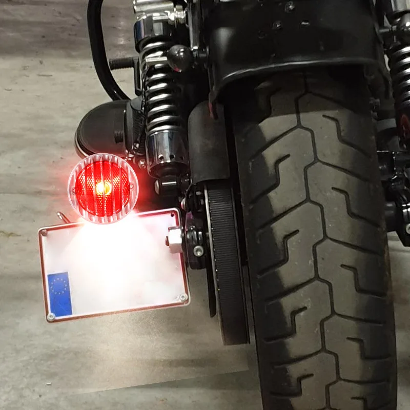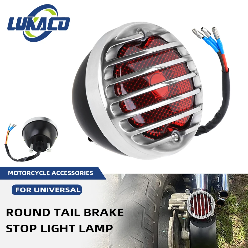 BWuxXUhNSNHere you can buy Universal Motorcycle Rear Round Vintage License Plate Tail Light Brake Light Lamp For Harley Bobber Chopper Scooters ATV Custom with free delivery to your post office.