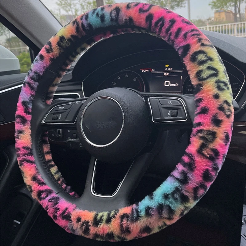 Universal Plush Leopard Pattern Car Steering Wheel Cover Car-styling Anti-slip Protective Case For Auto Interior Car Accessories - Купить с бесплатной доставкой