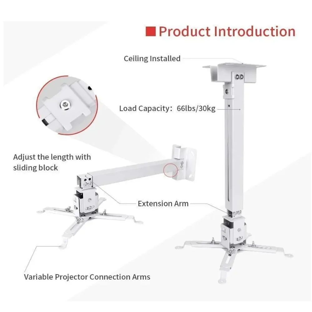 WmiYPBkNkHere you can buy Universal Projector Ceiling Mount Wall Bracket Holder Length Adjustable 15 degrees Rotate adjust Maximum loading 30 kg with free delivery to your post office.