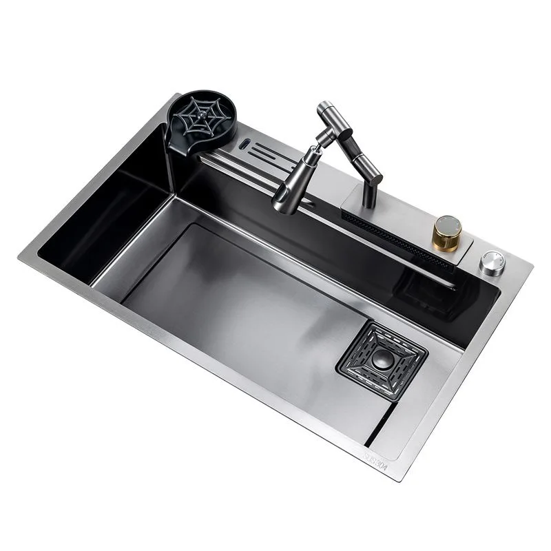 Universal Waterfall Kitchen Sink Large Single Slot with Digital Display Rotation Robot Arm Extension Faucet Kitchen Accessories - Купить с бесплатной доставкой