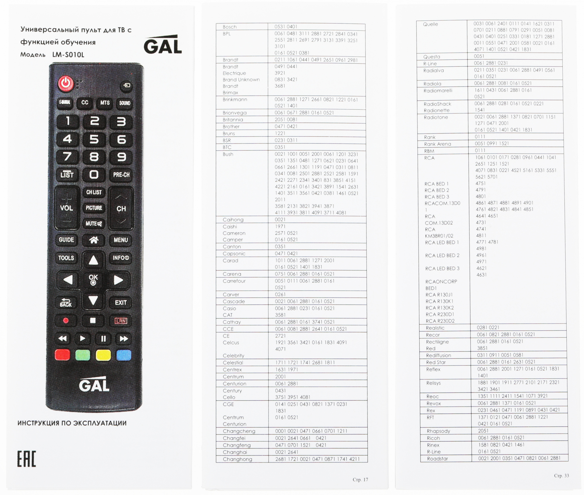 Универсальный пульт gal коды 127 фото