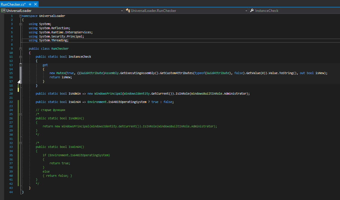 Этот класс нужен для проверки Mutex ( одноразовый запуск файла ). Так же для проверки прав Администратора и проверки битности системы.
