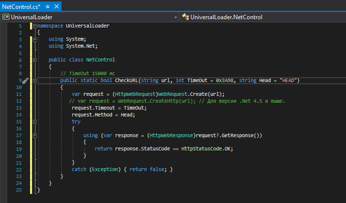 Создаём класс NetControl.cs