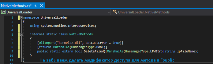 Так же нам потребуется класс NativeMethods.cs