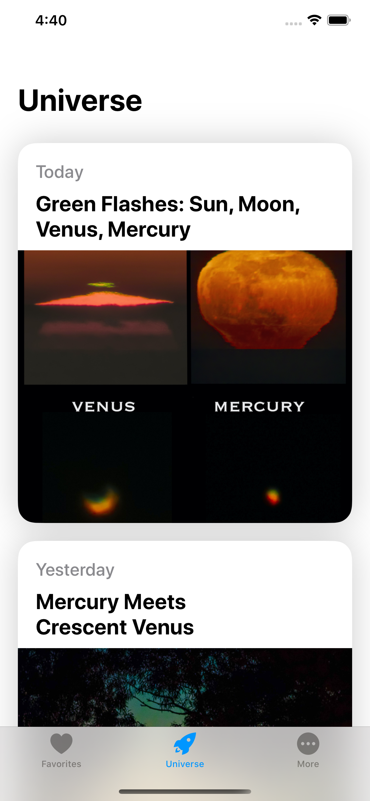 This app was born from a strong desire to learn more about space and software development. It displays images and videos from our universe keeping in mind a minimal and user-friendly design.