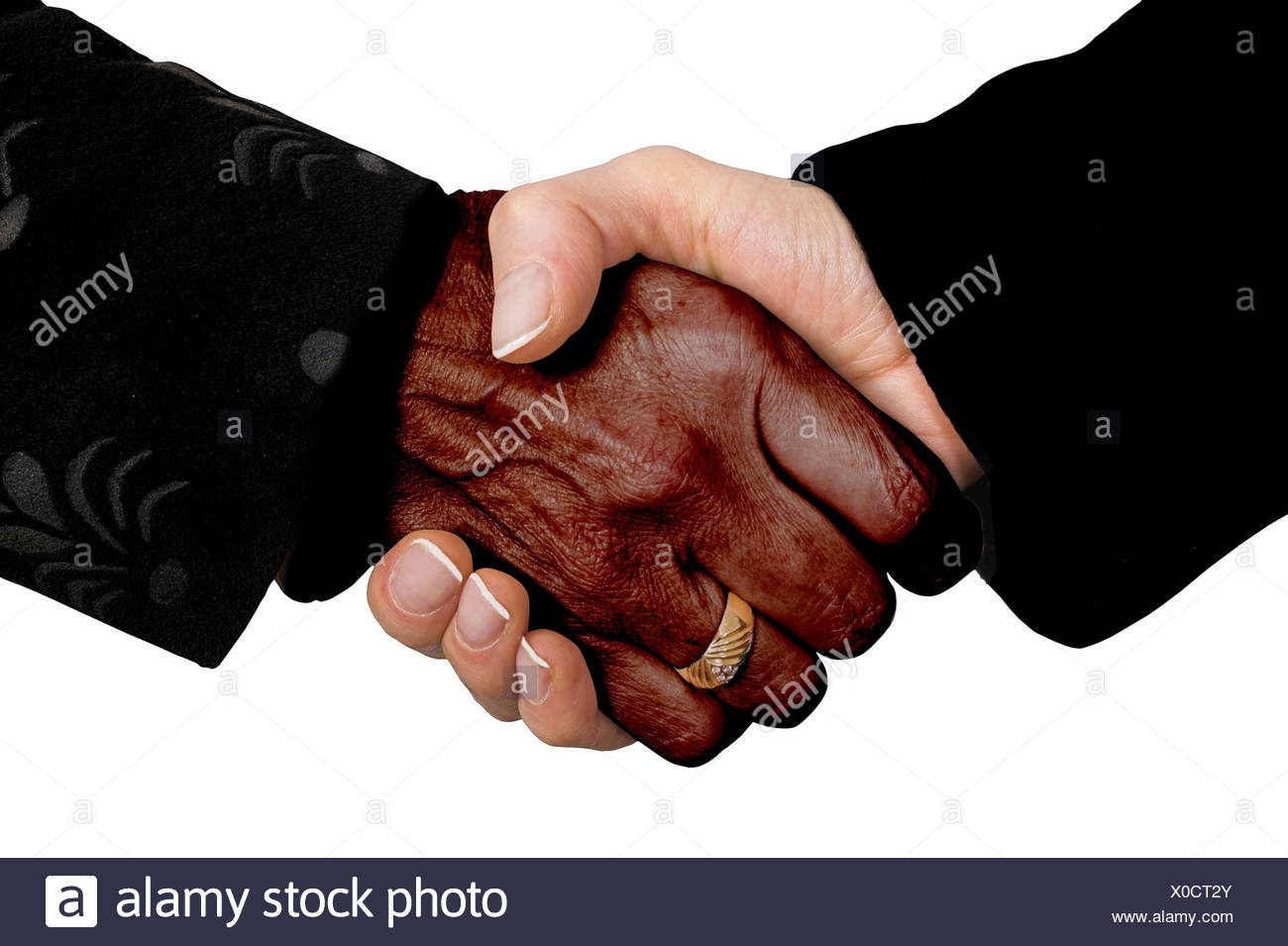 Portale di vendita online di immagini stock . Stretta di mano, tra un giovane bianco e uno nero ,
