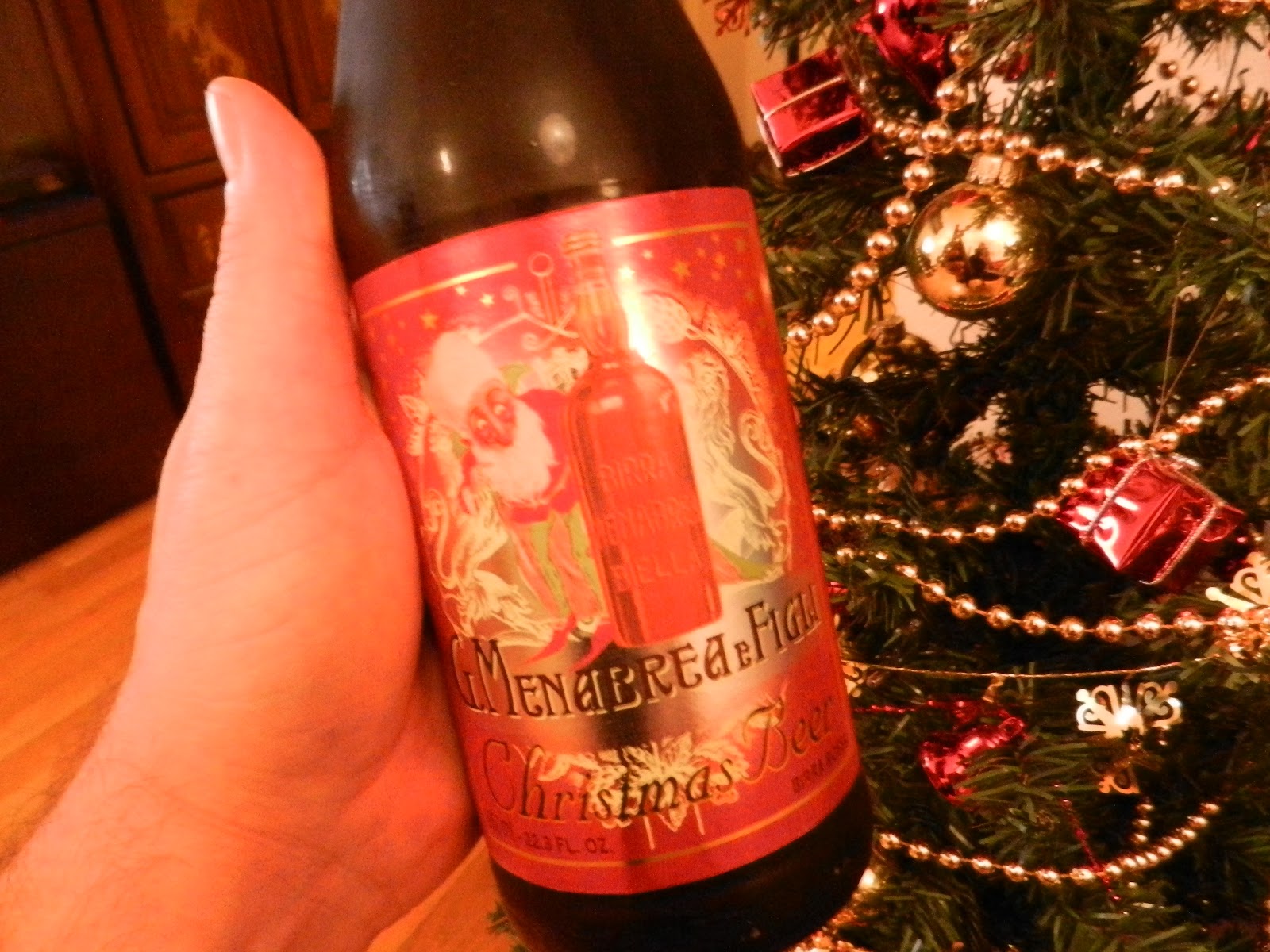 Per la specialissima cena in questione, ho azzardato una scelta, un pò controcorrente ma rivelatasi azzeccatissima . Ho accompagnato i forti sapori di montagna con una ottima birra rossa , MENABREA di Natale . Cercatela e provatela, davvero completa e facile da abbinare anche con carni saporite .Una buona alternativa al vino .