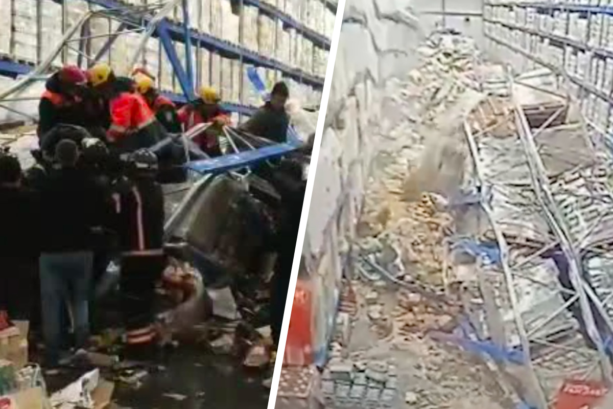 Упал стеллаж в магазине