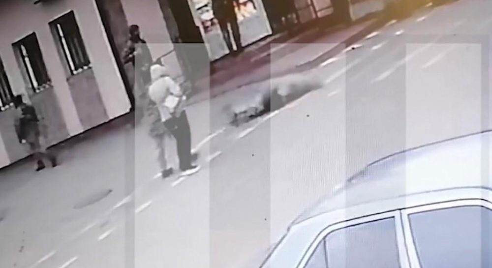Упала лицом на асфальт